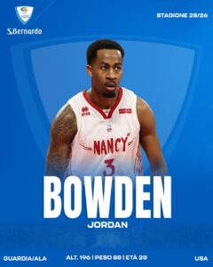 CANTÙ - Acqua S.Bernardo Pallacanestro Cantù comunica di aver raggiunto un accordo con l’atleta Jordan Maliek Bowden valido per la stagione sportiva 2025-26, con opzione per l’annata successiva.