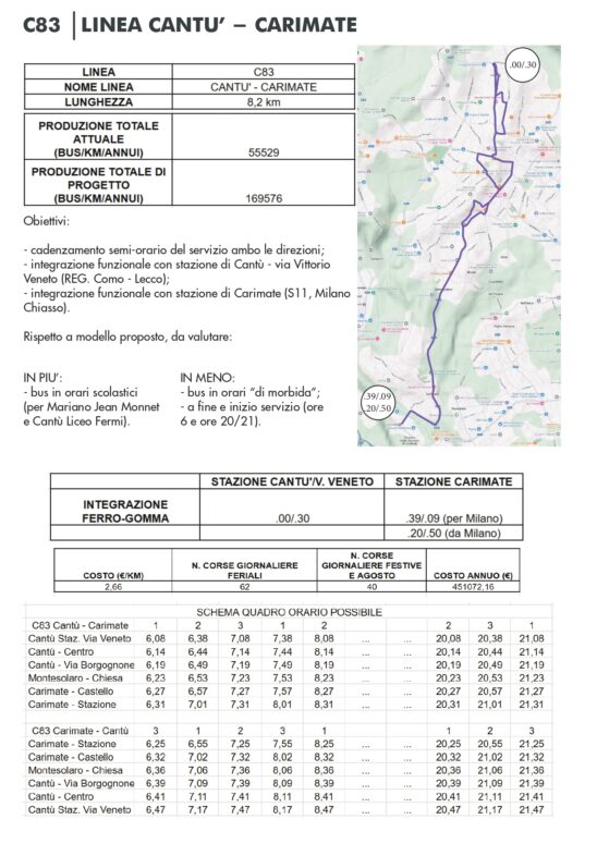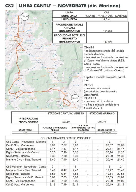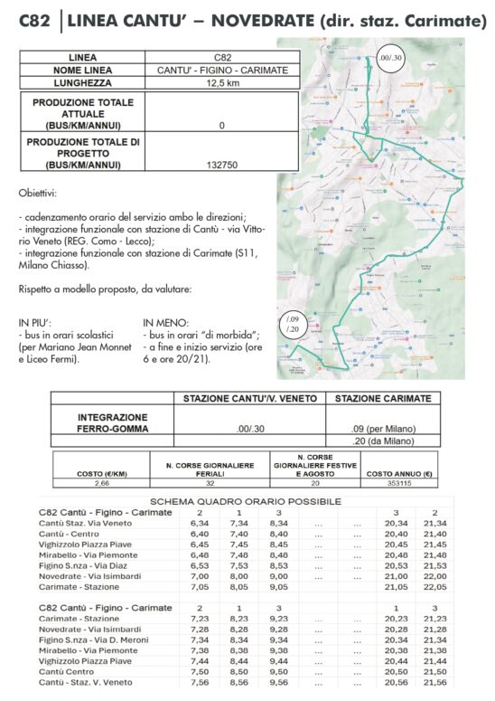 CANTÙ - Fridays For Future Cantù intende proporre, come una delle possibili alternative alla Canturina bis, il miglioramento della linea C82, in modo da favorire una mobilità alternativa all'auto. L'idea, per Carimate, è di un servizio su pullman cadenzato ogni mezz'ora (oltre alle corse scolastiche) avanti e indietro dalla stazione di Cantù di via Veneto alla stazione ferroviaria di Carimate. Programmando bene gli orari in modo da avere coincidenze ottimali con i treni circolanti sulle due rispettive linee.