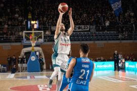 Terzo quarto con Rogic che apre le danze, poi canestro più libero di Marcius e bomba di Baldi Rossi (52-46). Risponde Cerella da fuori, però salgono in cattedra Nikolic e Bucarelli con la guardia toscana che mette due triple di fila (58-56). È Nikolic a trovare il pareggio con un gancio da sotto (58-58). Bucarelli incontenibile: ruba palla a Maspero e lancia Rogic in contropiede per il nuovo sorpasso (58-60). Clark c’è, ma Nikolic da fuori per il 60-63. Alla mezz’ora è 64-67 con Sacchetti da fuori.