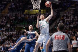 “Abbiamo visto una partita spigolosa, intensa e fisica. Noi abbiamo giocato con grande energia e con grande voglia, ma Bologna ha fatto lo stesso. Sono chiaramente contento per la vittoria e per il primo punto della serie. È banale dirlo, ma adesso la cosa fondamentale è resettare subito e recuperare più energie possibili, perché dobbiamo cercare di tenere sempre questa intensità nei 40 minuti. Nel primo tempo Pietro Aradori ha fatto alcuni canestri di un talento incredibile, ma ho avuto la fortuna di allenarlo e quindi so che è capace di queste cose. Tolto lui, però abbiamo sempre avuto la giusta attenzione contro il loro attacco. Nel momento in cui poi Pietro è un po’ calato, siamo riusciti a coprire bene gli altri. A cavallo tra fine terzo quarto e inizio quarto quarto abbiamo fatto un eccellente lavoro difensivamente e abbiamo creato il break decisivo. Dobbiamo prepararci perché Bologna proverà a trovare le contromosse già da lunedì e quindi dobbiamo essere pronti”.