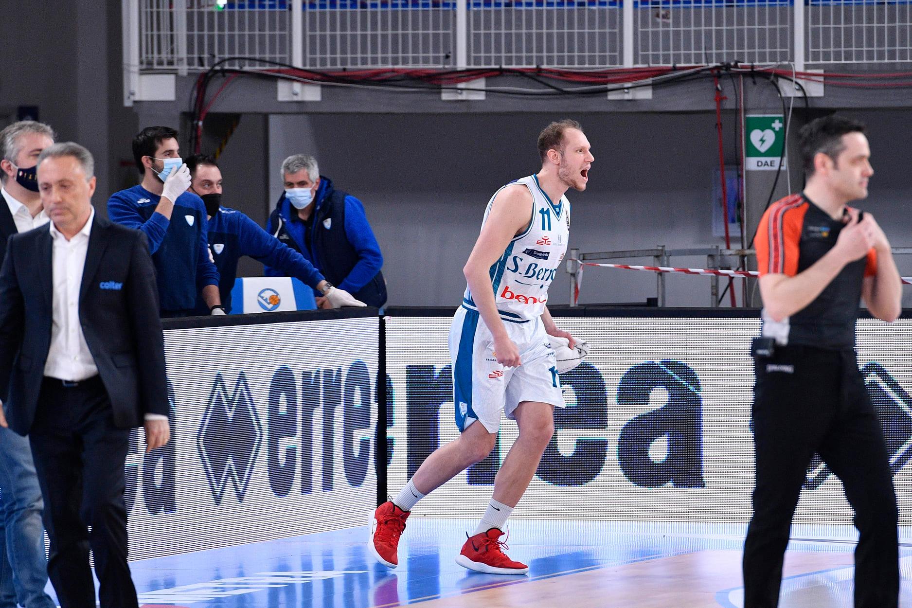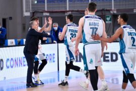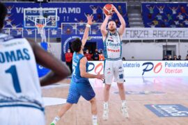 La tensione prosegue anche a cento secondi dall’intervallo lungo, con la terna arbitrale che sanziona Gaines per proteste. Lo stesso Gaines, con una tripla, nel finale di primo tempo prova a riacciuffare il risultato dopo il momentaneo +5 realizzato da Vitali. Un canestro di Moss consente alla Germani di mantenere comunque due possessi di margine anche al rientro negli spogliatoi: 42-38 al 20’. Già 18 i punti di Gaines alla pausa, 12 per Smith; per i locali, invece, Vitali unico giocatore in doppia cifra (12).