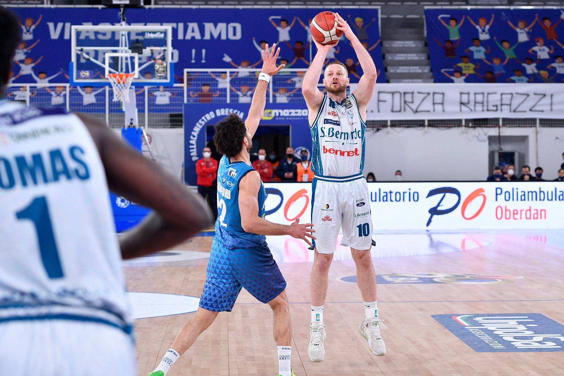 BRESCIA - Grande reazione d’orgoglio dell’Acqua S.Bernardo che, nel turno infrasettimanale in quel di Brescia, riesce a cogliere un successo importantissimo in chiave salvezza, battendo la Germani con il risultato finale di 74-69 a proprio favore e ribaltando così la differenza canestri; 89-93 per i bresciani nel match d’andata giocato a Desio.