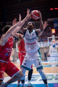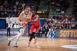 Saccaggi non molla e insieme a Copeland punisce Cantù da fuori, tutto riaperto: 67-66. Arresto e tiro di Logan per il +3 a 2’ dal termine (69-66). Bomba di Varnado per il nuovo sorpasso, poi ancora Wheatle a segno da fuori e Varnado in penetrazione: 69-72. Varnado e Copeland non sono precisi dalla lunetta, mentre Bucarelli allo scadere infila la tripla del sorpasso: 74-73.
