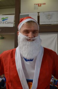 CANTÙ - Domenica il Parini ha ospitato la oramai tradizionale festa di Natale organizzata Minibasket Cantù e Progetto Giovani Cantù. In quest'occasione tutte le squadre hanno potuto sfilare davanti a un folto pubblico di tifosi, genitori e addetti ai lavori. I più piccolini si sono divertiti a vestire quattro Babbo Natale d'eccezione (i simpatici Bogdan, Ilia, Simone e Lorenzo dell'Under 18) e a raccogliere quanti più pacchi regali possibile, in una sfida all’ultimo canestro.