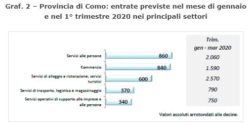 COMO - Nel 1° trimestre 2020 le imprese delle province di Como e di Lecco prevedono di effettuare complessivamente 18.260 nuovi ingressi. Rispetto al 4° trimestre 2019 si evidenzia una crescita di oltre 4.000 unità (-9%); in particolare, a Como +2.800 persone (+29,4%) e a Lecco +1.240 (+26,4%). A cercare nuovo personale sarà il 22% delle aziende comasche con almeno un dipendente e il 20,2% di quelle lecchesi (contro rispettivamente il 15,2% e il 14,3% del 4° trimestre).