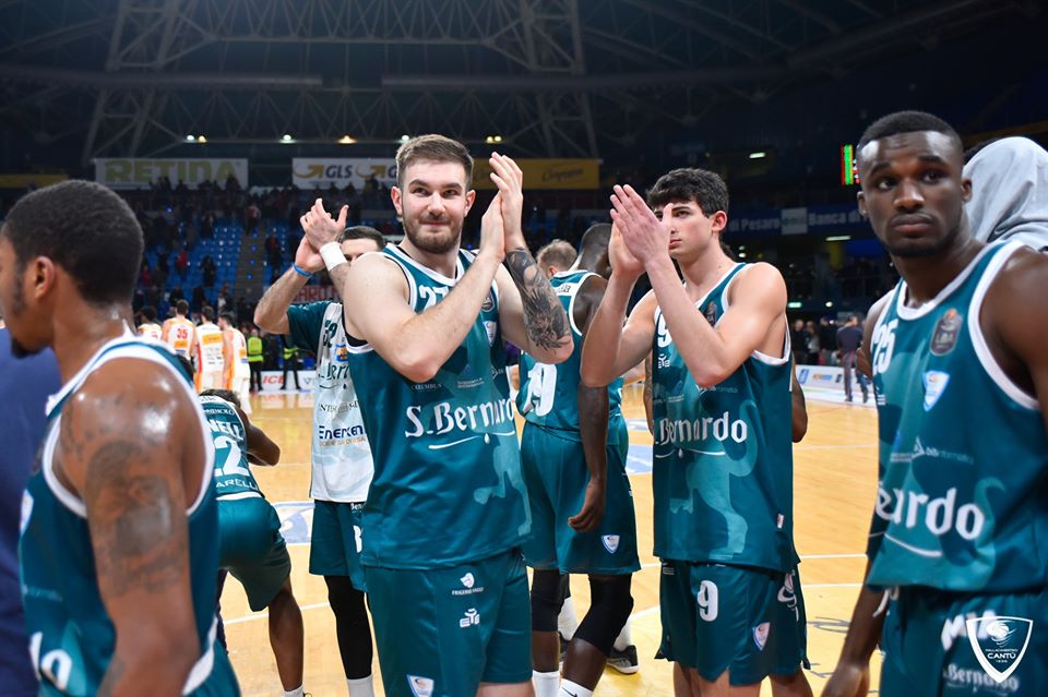 CANTÙ - Un lunch match di fuoco per la S.Bernardo-Cinelandia allenata da coach Cesare Pancotto che, domani alle 12, ospiterà al PalaBancoDesio la Germani Basket Brescia per il sedicesimo turno del campionato di Legabasket Serie A, il penultimo del girone di andata di regular season. Il derby lombardo con la Leonessa, ultima partita del 2019 (la prima del nuovo anno sarà il derbissimo contro l’Olimpia Milano, in campo al Forum di Assago domenica 5 gennaio alle 17), è la terza gara che Cantù gioca nell’arco di una settimana dopo le sfide esterne sui campi di Trieste e Pesaro. Dopo ben due trasferte consecutive in quattro giorni, fortunatamente entrambe vincenti, la S.Bernardo-Cinelandia si appresta a chiudere il tour de force natalizio contro un’avversaria di grande valore, appunto Brescia: una formazione ben allenata da coach Vincenzo Esposito e guidata in campo da giocatori di grande esperienza. Con 18 punti (nove vittorie e cinque sconfitte), la Germani è attualmente la quarta forza del campionato, subito dietro alle corazzate Virtus Bologna, Dinamo Sassari e Olimpia Milano. I bresciani, qualificati peraltro alle Top 16 di EuroCup, sono reduci da tre successi in fila in LBA, quattro nelle ultime cinque gare disputate: con Pistoia, Roma e Cremona le vittorie consecutive, una dietro l’altra. Insieme alla S.Bernardo-Cinelandia, la Leonessa è tra le squadre più in forma del campionato: lo sanno bene Virtus Roma e Vanoli, la prima sconfitta in casa con trenta punti di scarto; la seconda battuta in rimonta nell’ultimo turno di LBA.
