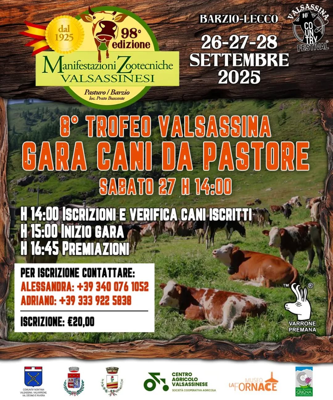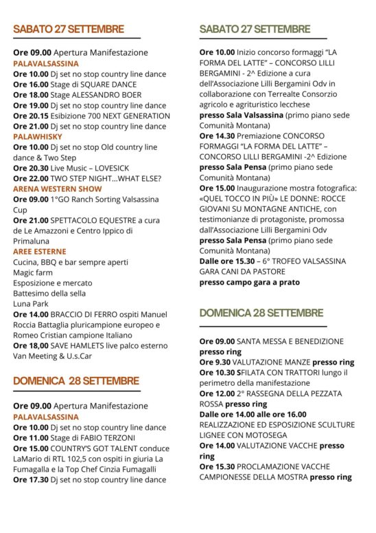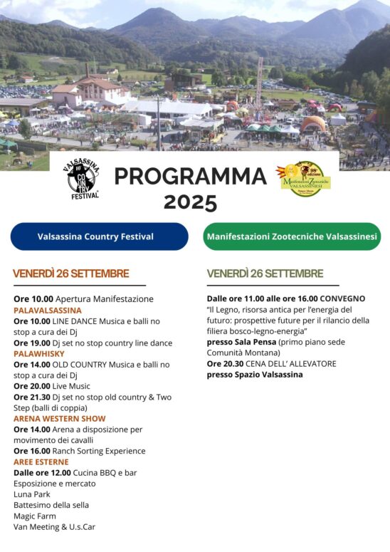 BARZIO - La Valsassina si prepara a vivere un weekend di festa, cultura rurale e spettacolo con due eventi imperdibili: il Valsassina Country Festival e le Manifestazioni Zootecniche Valsassinesi, che si svolgeranno in contemporanea tra venerdì 26 e domenica 28 settembre.